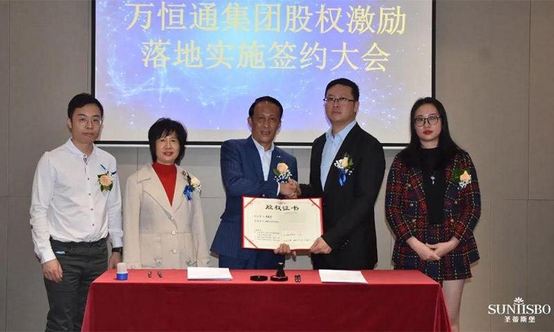 JDB电子集团集团执行董事及法人代表王浩基先生正式为第一期六位虚拟受限股股东授予荣誉证书并签订股权分配协议。